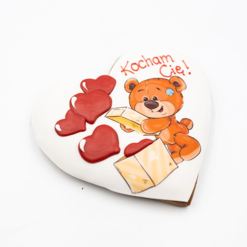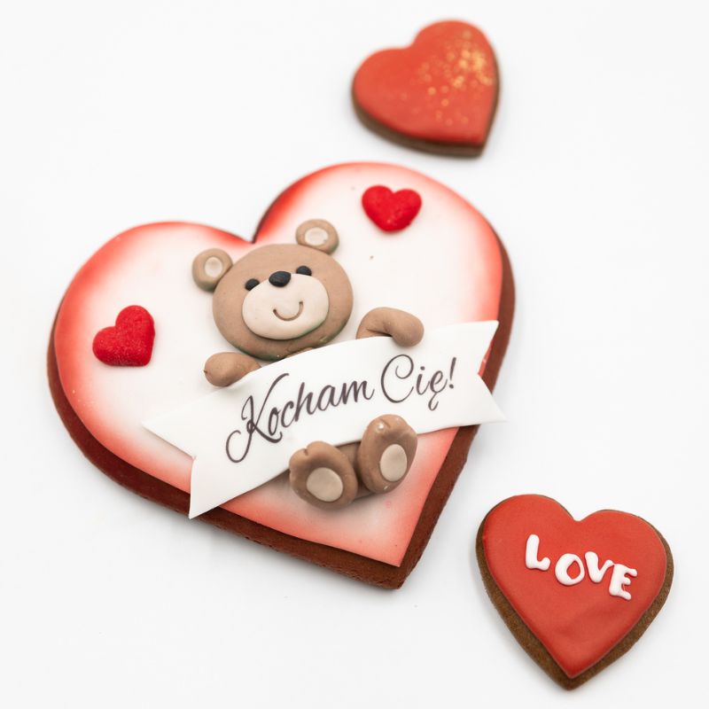 Słodki prezent dedykowany na Walentynki . Dekorowane pierniki .Wzór wybierany losowo.Waga: ok. 0,135 kg